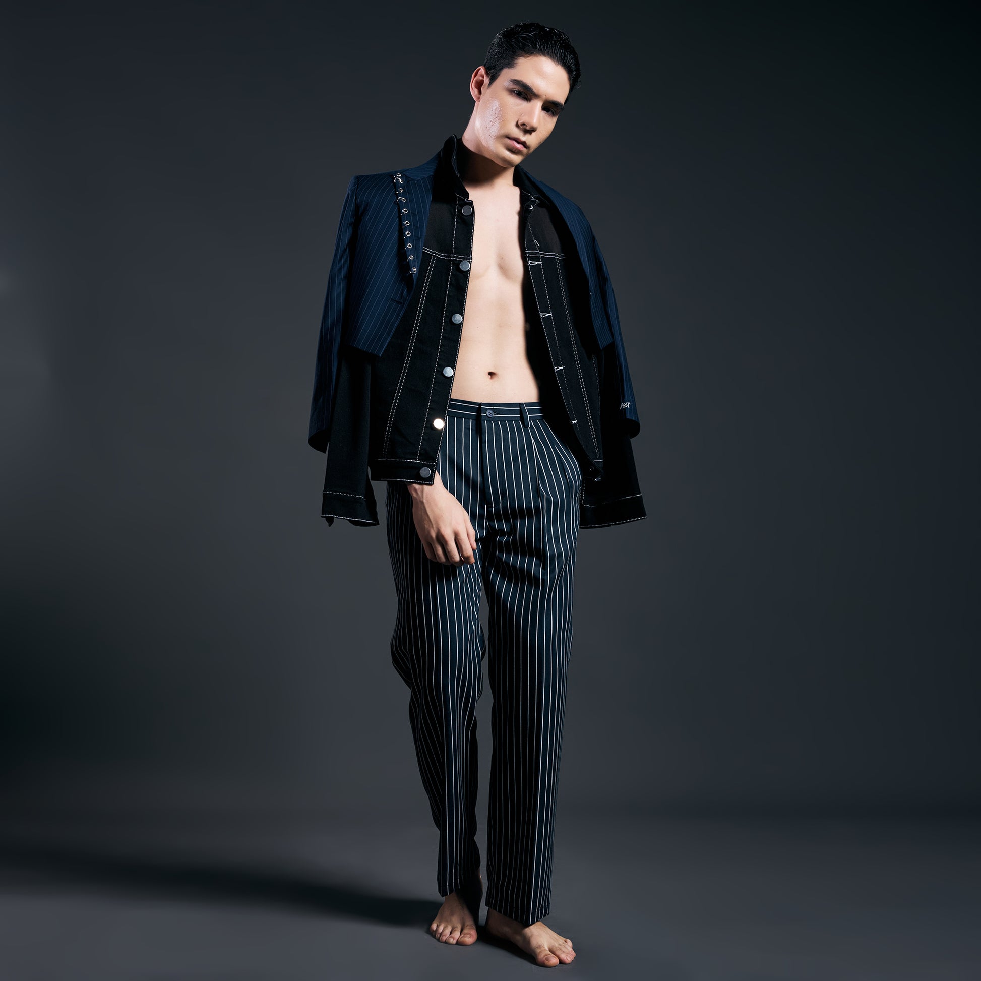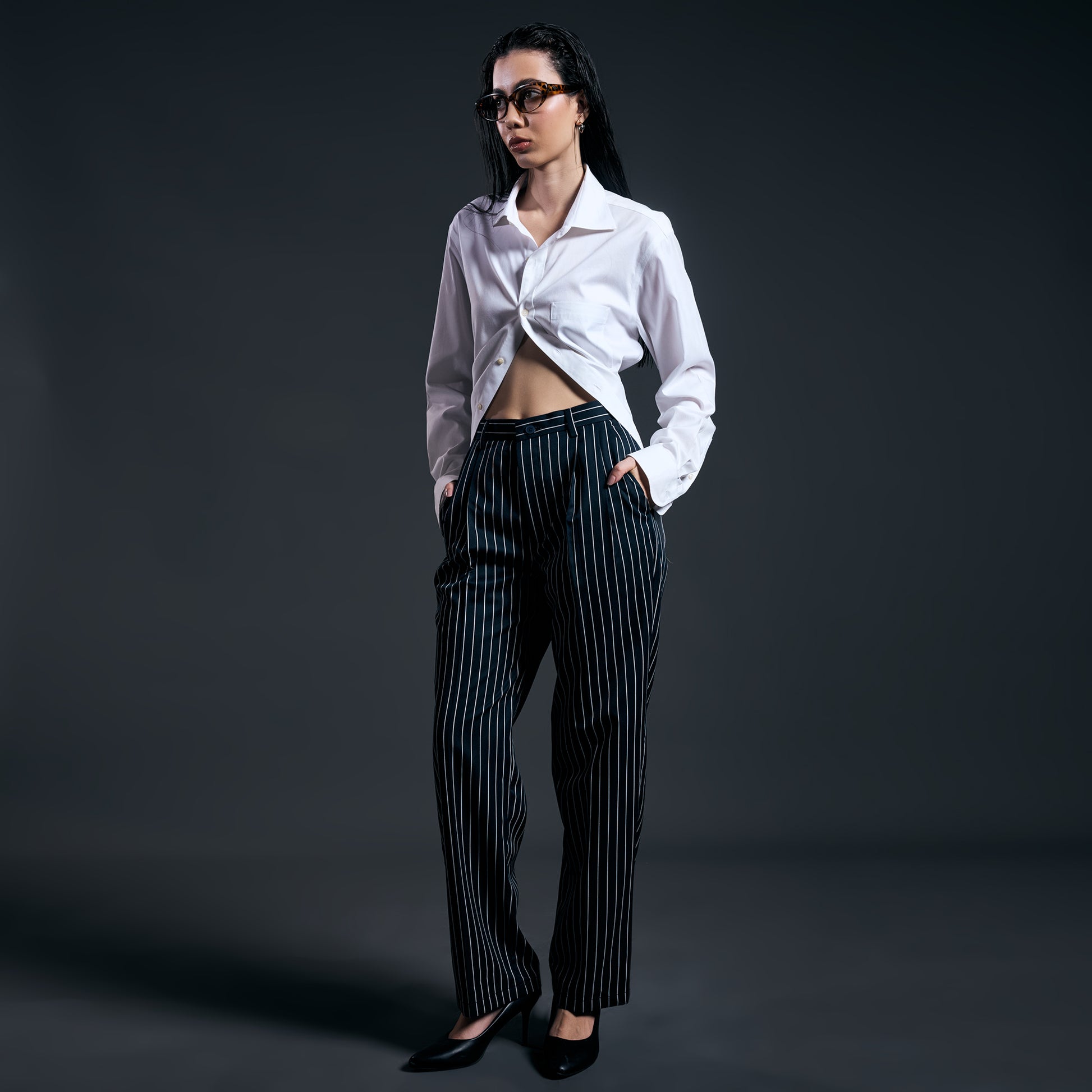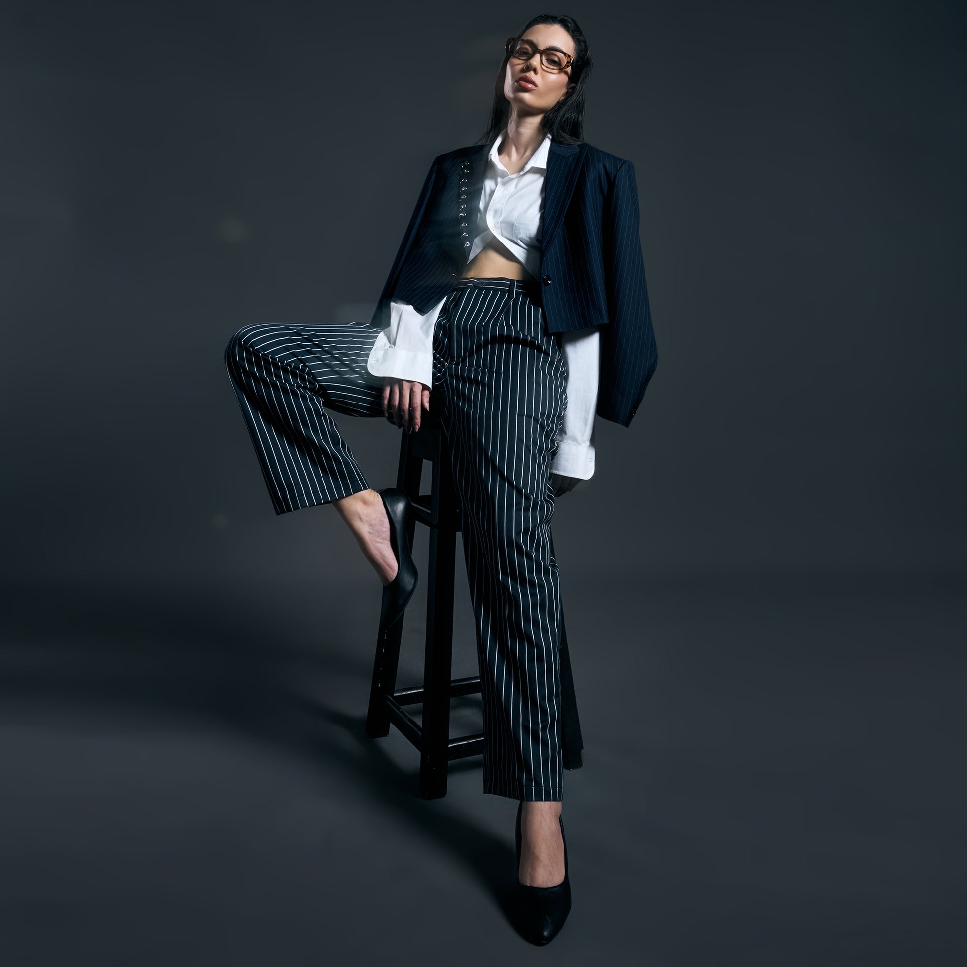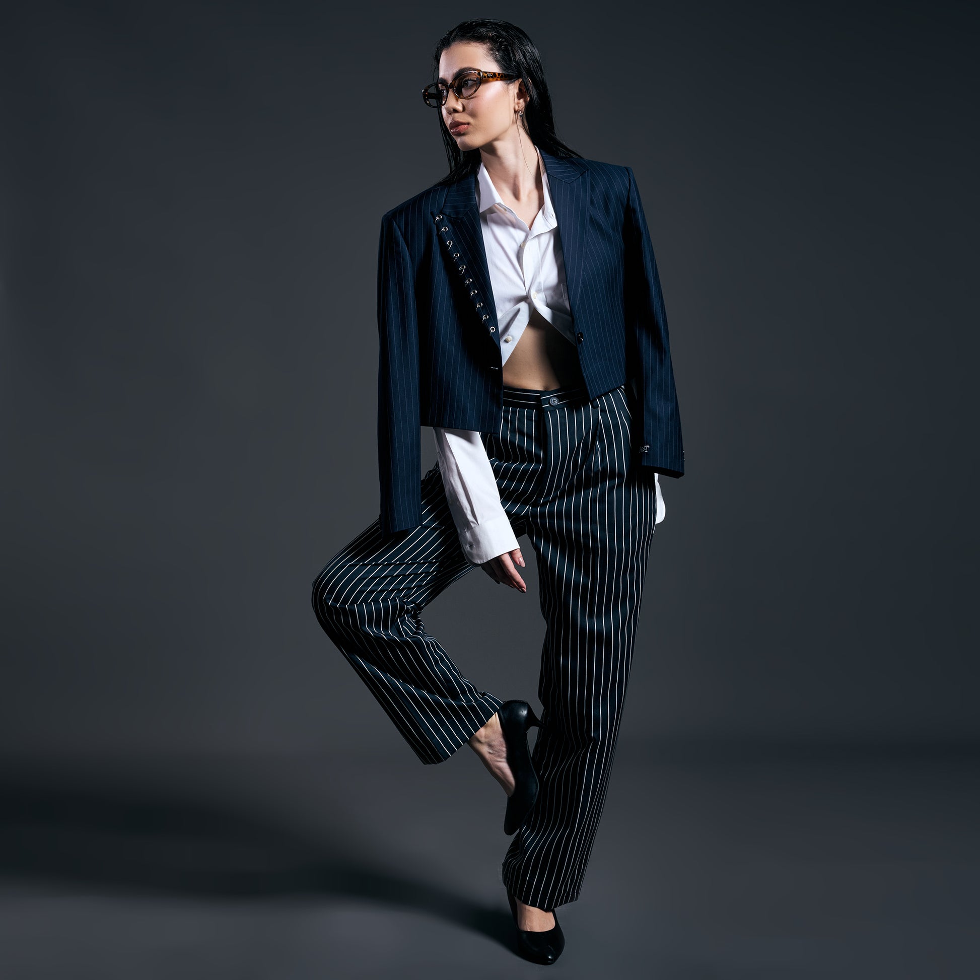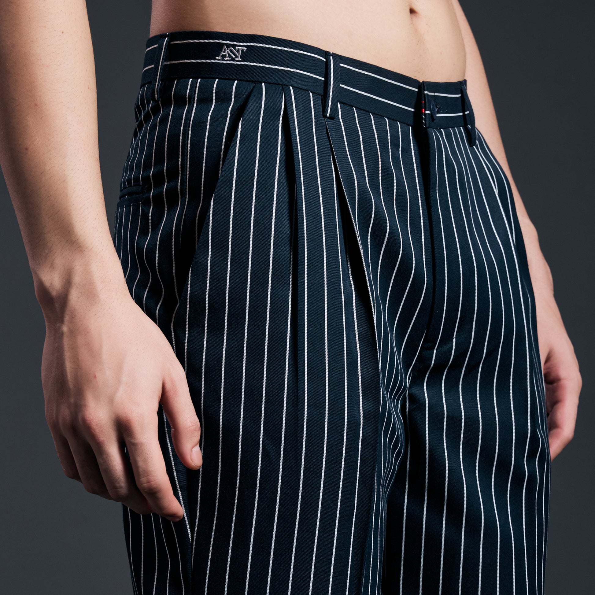 Tailored in blue cotton twill with crisp white lines digitally printed on both legs, the Back to Business Baggies blend professional polish with effortless comfort, designed for a sharp, modern return-to-office look.