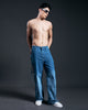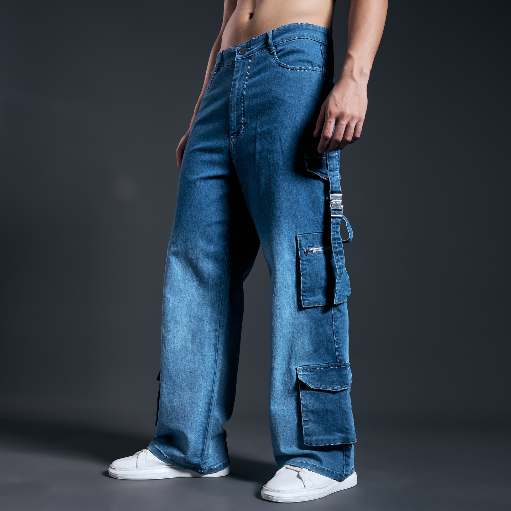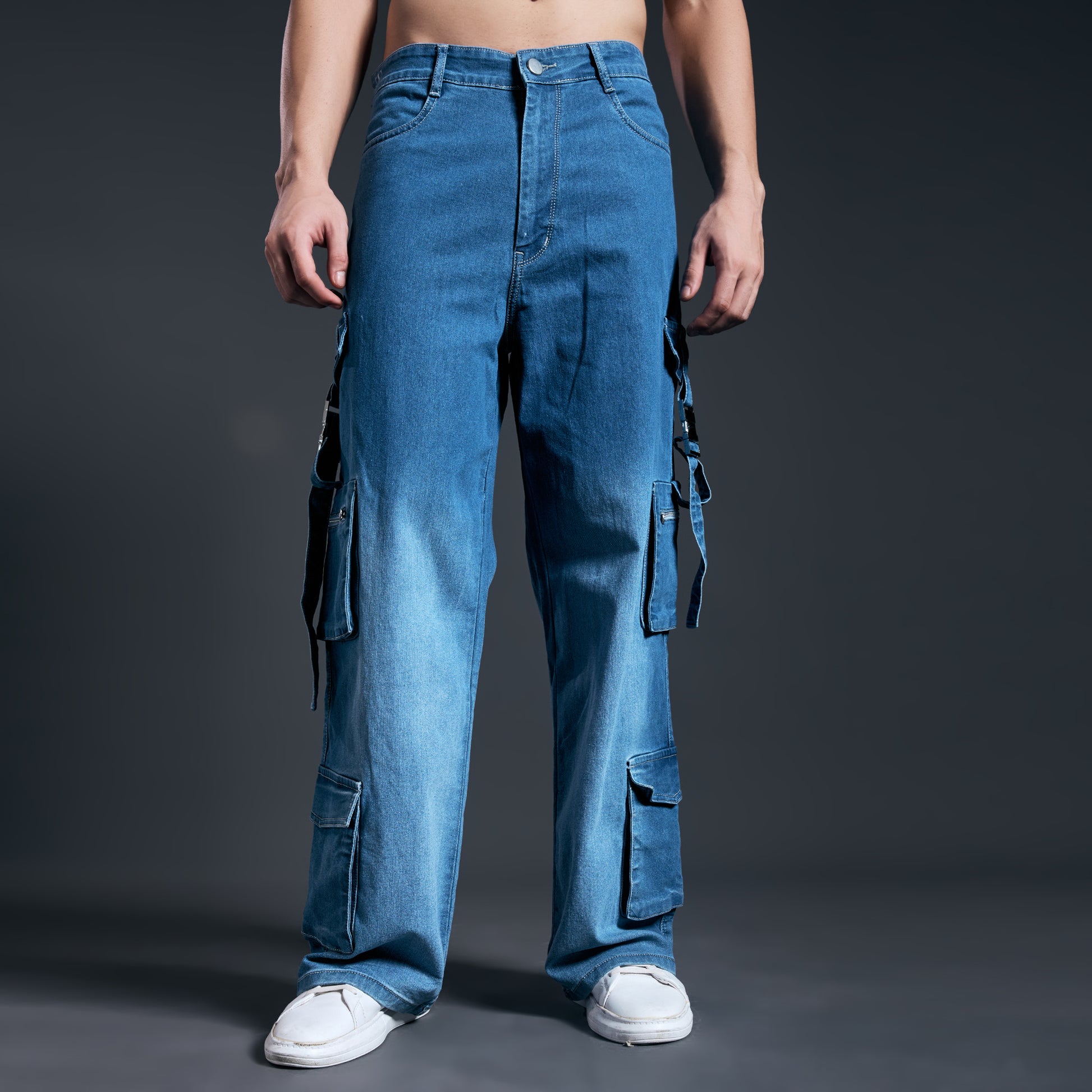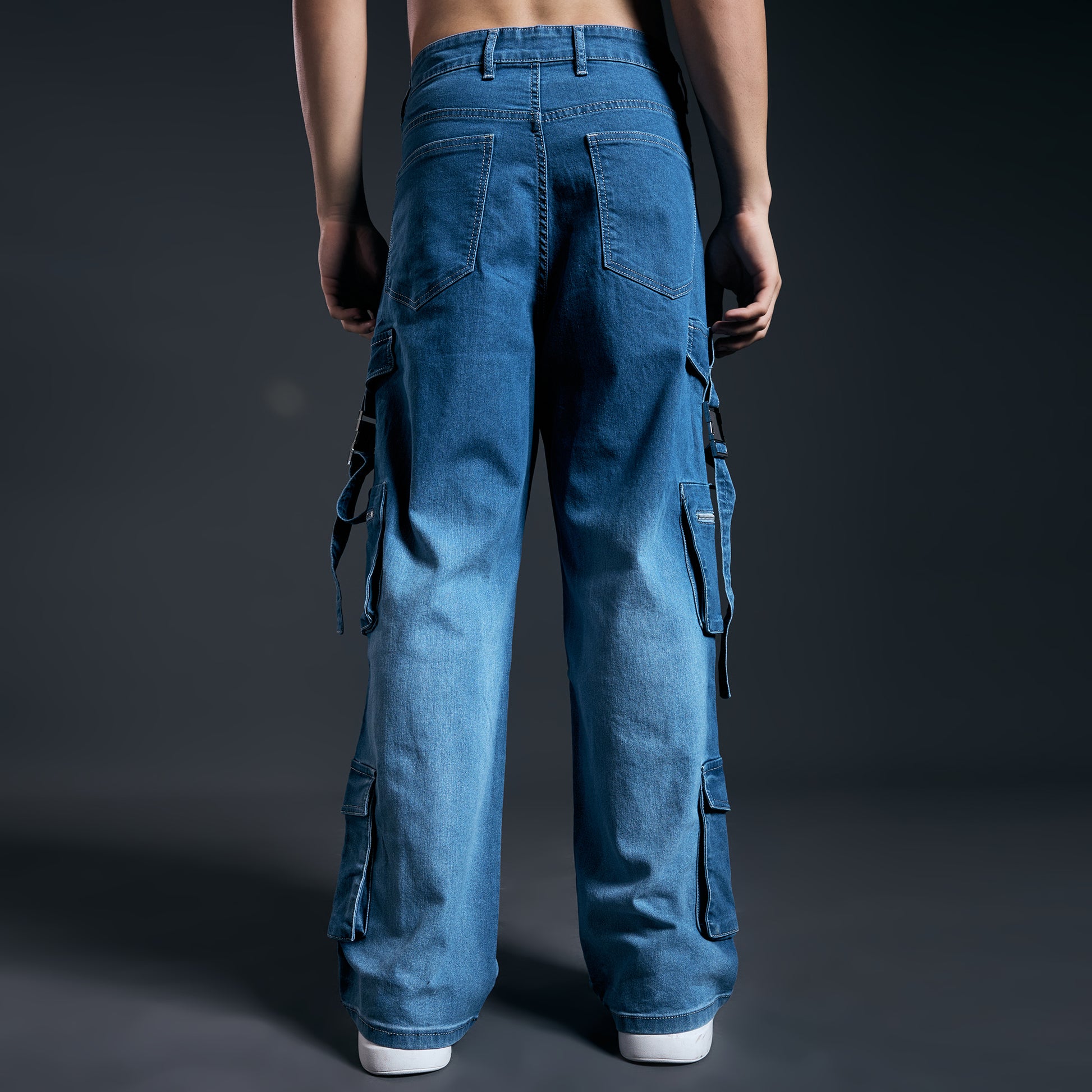 Blue denim with side buckles, mid-thigh and ankle pockets. Built for escape—structured, functional, and ready for anywhere but the desk.